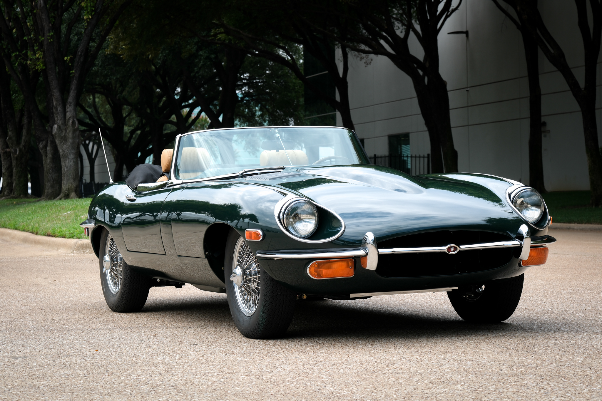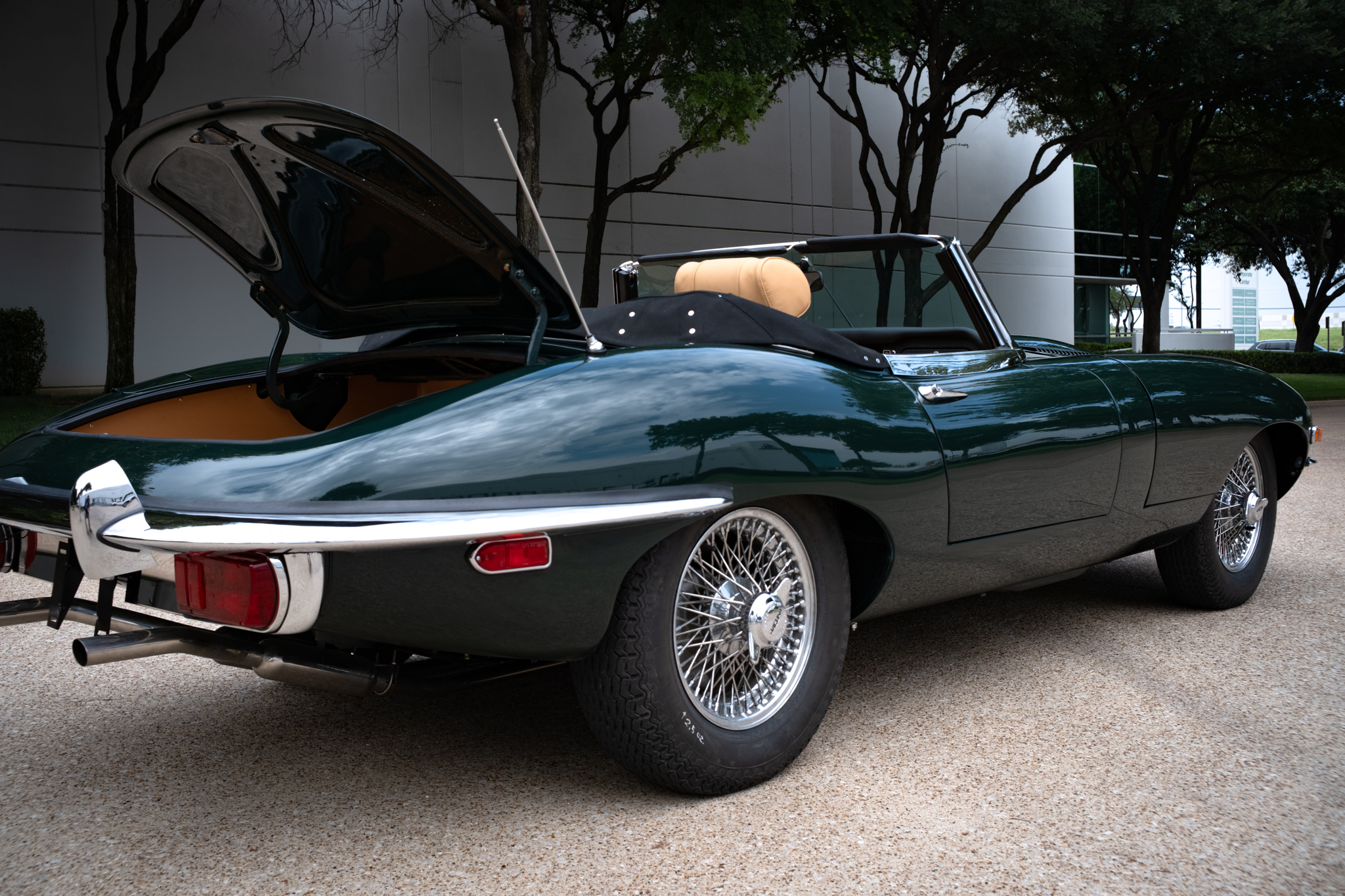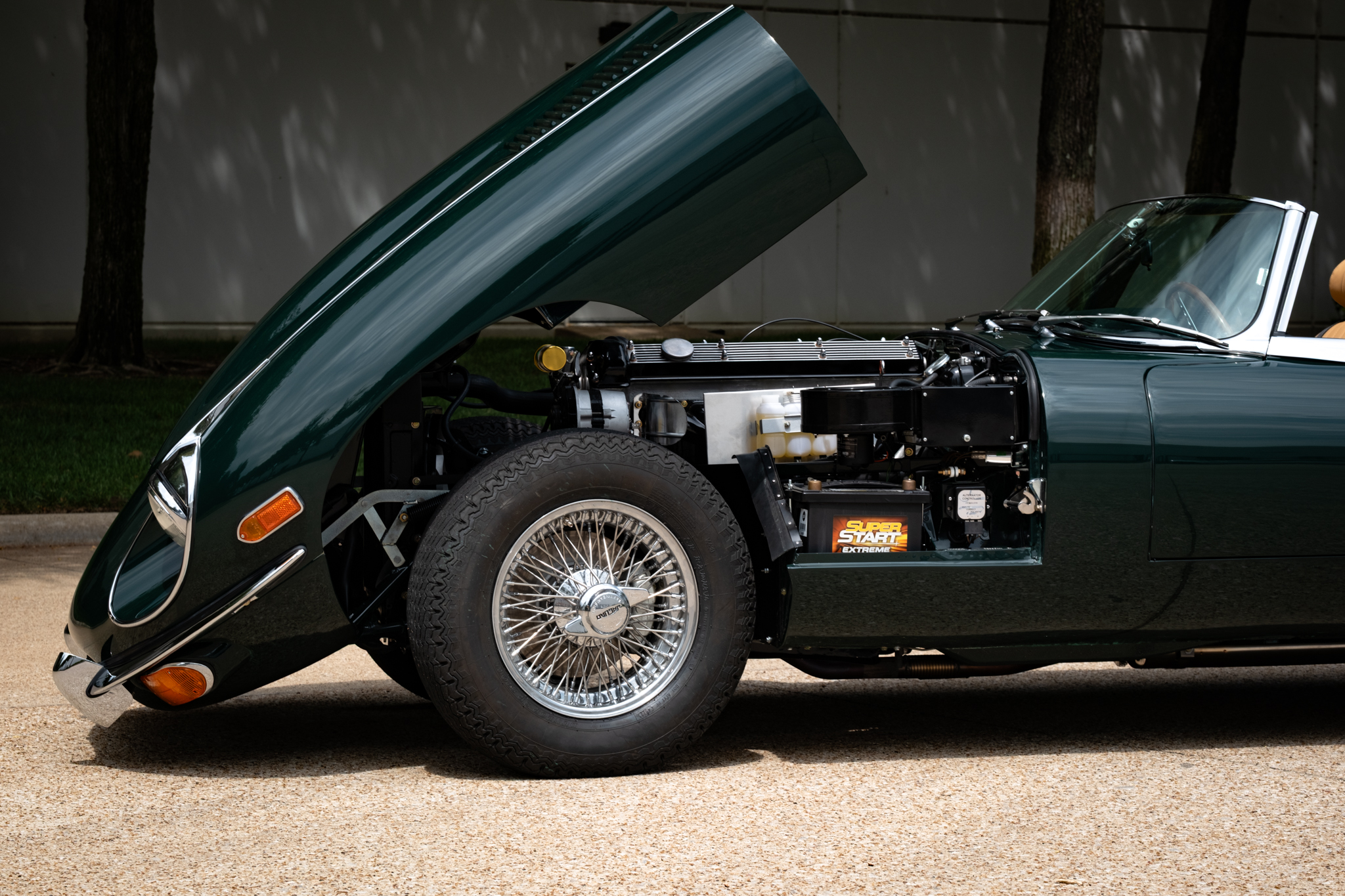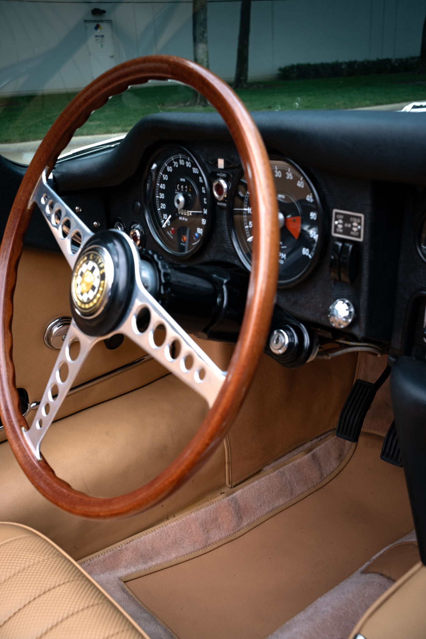 Originally housed at the owner’s East Texas home, the XKE remained in storage after the property sold and later moved to his parents’ home nearby. It was repainted before ownership and had an aftermarket air-conditioning system, now removed.
